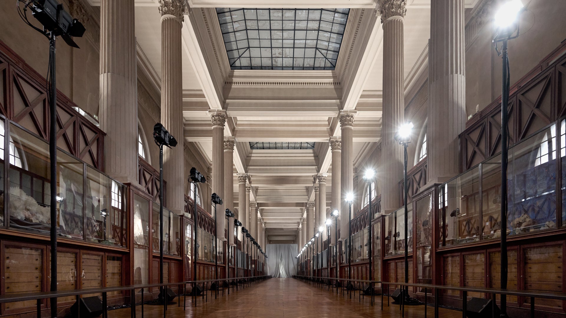 Set at the Galerie de Géologie et de Minéralogie in the Jardin des Plantes, the runway embraces the site’s architectural grandeur. Preserved in its original state, the space allows its structure and rhythm to frame the silhouettes. Light, volume and the length of the runway heighten the focus on the models’ stride.​